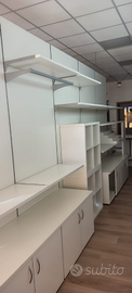 vendo arredamento per negozio in legno colore bianco con profili in alluminio dal design moderno ed elegante; arredo pari al nuovo, utilizzato pochissimo e tenuto con grande cura . Ideale per negozi di abbigliamento,beauty e accessori ;struttura solida, linee pulite e facilmente adattabile a diversi spazi.