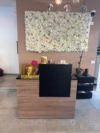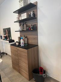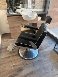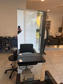 Vendo, causa cambio gestione, arredamento per parrucchiere con un anno di vita in ottime condizioni. Due specchi intera figura con mensola nera più due mobiletti a muro nero e rovere, una postazione isola con doppio specchio a figura intera e mensola incorporata, 4 poltrone con pompa idraulica nere, un mobile da lavaggio con sportelli e mensole nero e rovere, una cassa nero e rovere ed una poltrona barber. Prezzo per l'intero stock € 1000