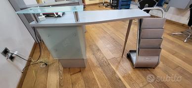 Vendo arredamento completo per salone parrucchiera / barbiere composto da n.° 5 postazioni dotate di poltroncina, specchio, cassetto, n.° 1 lavateste a due posti, n.° 1 tavolo-cassa con mobile e cassetto, n.° 1 mobile vetrina a due ante e mensole in vetro, n.° 4 caschi perfettamente funzionanti.