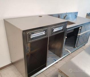 Vendesi Arredamento Bar composto da Banco, Vetrina e Retrobanco 3 metri lineari L'arredo è NUOVO ed è modulabile in diverse misure Struttura INTERAMENTE In Acciaio Inox GREZZO SENZA RIVESTIMENTO La composizione prevede: - Bancone refrigerato con sportelli e motore incorporato - Top in acciaio con predisposizione bancalina - Vano neutro - Vetrina snack fredda/calda con vetro dritto - Base Neutra con scorrevoli con lavello ad incasso - Base per Macchina Caffè con battifiltro e cassetto di servizio Possibilità di aggiunta drop-in caldo o freddo ventilato Disponibilità di moduli aggiuntivi