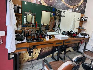 Vendo per rinnovo locale, arredo Barberia.. composta da 4 posizioni da lavoro tra cui 1 bancone formato da 2 postazioni con un punto acqua centrale lungo 340cm alto 250cm profondo 60 cm, 2 postazioni singole tra cui i banconi sono: 1 con punto acqua, lungh1 130cm alti 250cm profondi 35 cm.
