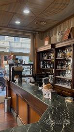 -bancone bar completo di retro banco e banco lavoro, cassetti, sportelli ecc tutto in legno con base marmo