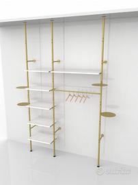 Vendo arredo completo per negozio abbigliamento / boutique, linea elegante colore oro, acquistato nel 2022. Arredo professionale moderno, ideale per allestire da subito un punto vendita con stile. Il lotto comprende: o 3 piantane da terra H190 cm o 5 strutture pavimento-soffitto H3 metri o prolunghe montante soffitto o pannelli griglia oro o ganci e appendini esposizione o 2 stender tondo oro o 1 stender doppia altezza con ripiano Condizioni ottime, sempre utilizzato in negozio. Ideale per: o boutique o negozio intimo o negozio abbigliamento o negozio accessori Vendita in blocco. Ritiro a mano disponibile previo appuntamento Possibilità di spedizione da concordare, con costi e organizzazione a carico dell'acquirente Per info o ulteriori foto contattare in privato. arredo negozio abbigliamento, arredamento negozio, espositori boutique, arredo negozio oro, attrezzatura negozio