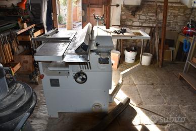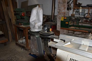 Oggetti polverosi ma intatti. Monofase. Aspiratrucioli doppio sacco. Perfettamenti funzionanti. Combinata con toupie, Carrello scorrevole. Sega circolare angolare. Iperaccessoriata. Libro istruzioni.
