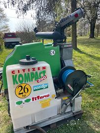 Atomizzatore professionale Tifone Citizen 26 HP Kompact 300 Lt. Macchina acquistata nel 2010, Motore diesel Lombardini 26 HP a 3 cilindri con avviamento elettrico. Serbatoio in polietilene da 300 litri con scala graduata per i litri contenuti. Cannone Flexigun orientabile omnidirezionale con gittata fino a 25-30 metri, Macchina completamente autonoma e adatta per trattamenti di disinfestazione, sanificazione e trattamenti ambientali. Rullo avvolgi tubo manuale con 50 m di tubo nuovo ed alta pressione dotato di lancia mitra. Possiamo anche inviare un video tramite whatsapp a chi ne fa richiesta