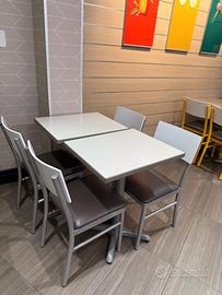 - 1 tavolo da 3 posti (48 x 182 cm lunghezza) e e 1 tavolo da 4 posti (48 x 243 cm lunghezza) con canalina passacavi, prese/spine e porta USB per ricarica