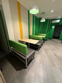 - 2 divanetti singoli imbottiti con seduta comoda e struttura in acciaio e 1 divanetto doppio imbottiti con seduta comoda e struttura in acciaio