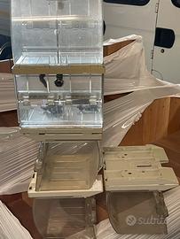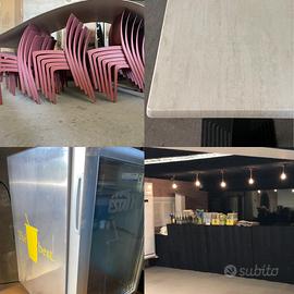 !!!!!!!STOCK !!!!!!! Per l'acquisto di tutta l'attrezzatura sotto elencata in blocco no singolarmente RISPARMIATE OLTRE IL 20% dal prezzo pubblicato. Il tutto visibile in loco come da foto Si elencano le seguenti attrezzature: Cucina due fuochi misura 70 pz1 Pastorizzatore 40 lt marca bravo trifase reffreddamento ad acqua pz1 Spremiagrumi automatico Zumex pz 1 Erogatore acqua cobra due vie , monometri, co2 , filtri , motore da sottobanco pz 1 Banconi resina nero per esterni ideale per banqueting e cocktail pz 2 Cappa misura 180cm pz 1 con Raccordi e tubazioni inox per canna fumaria. Aspiratore trifase 2 velocità pz1 Tavolo stile industrial uso pizzeria misura cm100 X 100 pz 18. cm200 x 100 pz 4. Sedia polipropilene porpora pz 96 Tavolo con piede in ghisa e piano in werzalit beige per uso caffetteria bar misura cm60 pz 8 Poltrona rattan cacao pz 16 Piastra elettrica con stampo per 2 waffle rettangolari pz 1 Piastra vetroceramica doppia a due presse manuali panini toast piade pz1 Piastra induzione fimar pz1 Frigo vetrina illuminata da sottobanco pz1. Espositore luxury in plexiglas portaconi per gelateria pz1 Espositore gratta e vinci plexiglas pz 4 Alzate inox porta buffet salato/dolce pz 20 Vasi graniglia beige da decoro urbano misura 90x30x50 Pz 4 Brasiera alluminio con manici e coperchio misura 80x50x25. Contenitori per farina pz2 Contenitori panetti pizza pz12 dosatore salse inox pz1 mensole inox pz2 vaschette inox pz 24 palette gelato spremimelograno manuale pz1 Centrifuga insalata Altra utensileria. !!!!SI VALUTANO VOSTRE PROPOSTE!!!! ANCHE SCAMBI A PARITÀ DI VALORE.