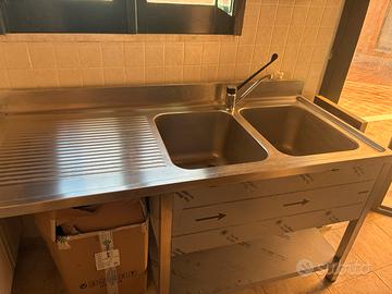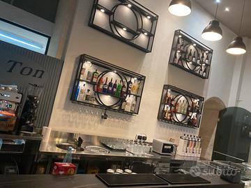 vendesi attrezzatura da bar ristorante, composta da cucina professionale 4 fuochi 80x80, cappa professionale a parete con filtri a labirinto misure mt 1,60x1,10in acciaio motore e aspirazione fumi incorporati, lavello 2 vasche in acciaio mt 1,70, n 4 scaffali in ferro porta bottiglie e bicchieri come in foto misura mt1,,40x80 cm vendesi anche singolarmente, n. 6 sgabelli in velluto, tre colore ocra e tre colore nero, si vendono anche singolarmente, tutto nuovissimo acquistato 2024 vendesi in blocco e singolarmente escluso trasporto vero affare, vendita per chiusura locale