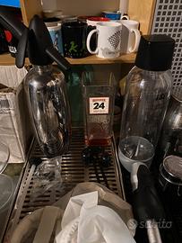 Attrezzatura bar usata ma in ottime condizioni Barmat, shaker, jigger , strainer, barspoon, attrezzi per scavo e decorazione frutta, squeezer, condiment holder, salva goccia per jigger e da banco MIXING GLASS SIFONE PROFESSIONALE TWIST N SPARKLE con bombolette co2 Squeezer, cannucce in metallo, dosatori, cannello Swizzle in legno Superbag filtrante