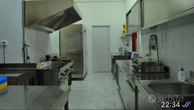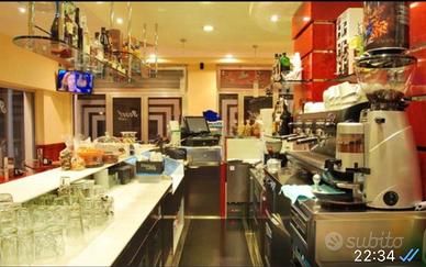 ( divano di metri 6 più 55 sedie e 18 tavoli), banco bar semicircolare in legno color ciliegio con piano in coreal composto da più banchi refrigerati con varie porte, ampia vetrina cornetteria, vetrina gelateria con venti vasche più lavello, banco refrigerato e monta panna, banco caldo per dolcetti e pietanze, banco crepes con mobile con porte sottostante, retropalco refrigerato di circa metri 2 a 3 porte, lavello a due vasche su mobile chiuso con ante, piano per macchina da caffè, macchina da caffè faema in comodato d'uso a tre bracci con macinino e sottostante mobile chiuso con ante, lavastoviglie, produttore ghiaccio, macchina ginseng e orzo, granitore, angolo cassa di ultima generazione marca olivetti, 2 tv led fullhd, aria condizionata, controsoffittatura scalare sul banco, mensole in cristallo, bagno pubblico per uomini donne e disabili. Licenza autorizzazioni sanitarie per bar gelateria pasticceria e ristorazione. Zona posteriore laboratorio ufficio deposito e bagno privato Forno pizzeria a due piani per dodici pizze, congelatore per cornetti, 4 tavoli lavoro per preparazione con sottopiano in acciaio e 2 con cassettiera, forno per cornetteria, friggitrice nuova a due vasche, piastra per panini e bruschette, cucina per preparazione di carne e pesce frytop più cucina professionale a due fuochi, cappa di aspirazione professionale, cella frigo a 2 porte più congelatore, lavastoviglie industriale, lavello a due vasche in acciaio, pensile chiuso in acciaio di circa metri 5. Laboratorio gelateria: armadio congelatore, lavello più mensola con due porte di metri 1,5, tavolo preparazione gelato, pastorizzatore 55 litri, mantecatore ad acqua, mantecatore ad aria.