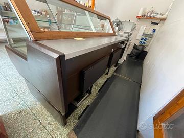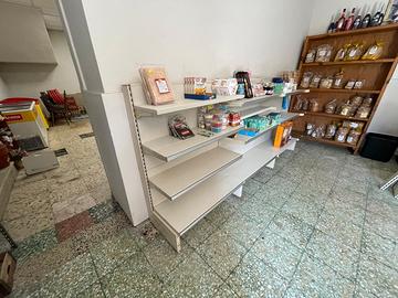 Vendesi attrezzatura per negozio consistente in 28 metri lineari scaffalatura, un banco frigo positivo ricondizionato da un anno (morote nuovo), banco cassa e registratore di cassa.