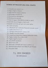 Vendo attrezzatura edile usata come descritto nella prima foto. No messaggi ma telefonare per informazioni.