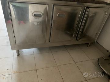 Causa chiusura attività vendo.attrezzatura negozio gastronomia: vetrinetta riscaldata ?250 stipetti 4 ante acciaio inox ?350 banco refrigerato acciaio inox ?250 cappe acciaio inox due pezzi ?500 l'una Tritacarne con grattugia 380 volts ?450 ceppo legno con gambe in acciaio €250