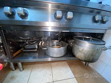 Vendo Attrezzatura Cucina Professionale. Set di attrezzature adatte per ristoranti, pizzerie, bar o altre attività di ristorazione. Disponibile : 1. Cucina 6 fuochi - Zanussi 2. Bollitore Elettrolux 3. Congelatore a colonna Samsung 4. Forno Fimar Elettrico - comandi meccanici 5. Armadio refrigerato 6. Banco frigo - 5 porte 7. Lavello 1 vasca + banchi in acciaio 8. Pensile - Ante scorrevoli 9. Lavastoviglie 10. Cappa professionale 11. Vetrina bevande