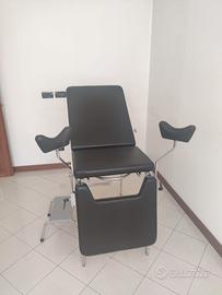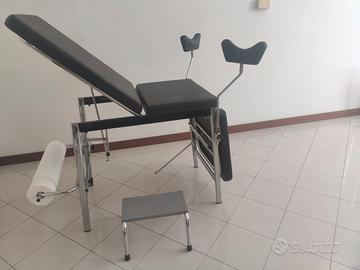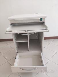 Lettino per visita comprensivo porta rotolo, poggia gambe e sgabellino ; carrello porta pc o scanner con cassetto estraibile per tastiera marca Dental Art
