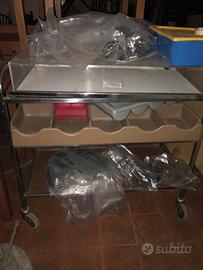 12 Tavoli 140x80='€ 90 cad Griglia a pietra lavica=€ 400 Porta piatti =€ 100 Carrello porta posate=€ 150 Armadio Acciaio =€ 200 Posate =€ 350