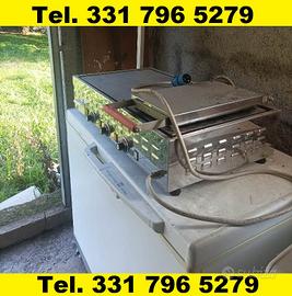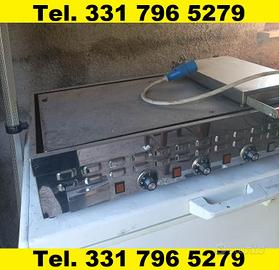 5. Piastra elettrica, alimentazione 220 V monofase, pianale cottura liscia ottimo per cuocere hamburger, hot dog, salsicce e altro - è fornita anche di calotta schiaccia panini. Dimensioni della piastra: lunghezza 90 cm x larghezza 50 cm circa.