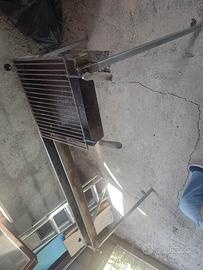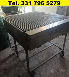 1. Griglia alla brace nuova, fatta tutta in acciaio inox piano cottura di 100 x 100 cm circa, realizzato con quadrelli di acciaio pieni da 1x1 cm. L'altezza del piano cottura è di 90 cm da terra, inoltre il mobile è fornito di ruote. Ottimo per la cottura di hamburger, hot dog, salsicce e altro