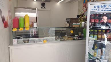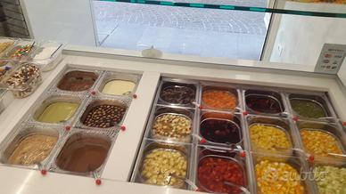 - Bancone yogurteria caldo/freddo con alzata in vetro (6 vaschette a bagno maria per salse e 12 vaschette freddo per frutta), compreso di tutti gli accessori
