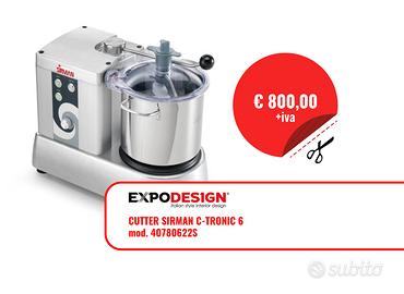 L'EXPO DESIGN srl propone nel suo outlet le macchine di seguito elencate: -Mescolatrice planetaria DITOSAMA (NUOVO) -Cutter SIRMAN (NUOVO) -Grattuggia SIRMAN (NUOVO) -Tritaghiaccio WARING (NUOVO) -Lavacozze SIRMAN (NUOVO) -Impastatrice AVANCINI (DEMO/USATO PARI AL NUOVO) -Frullatore SIRMAN (DEMO/USATO PARI AL NUOVO) -Tritacarne SIRMAN (NUOVO) -Tritacarne/Grattuggia SIRMAN (NUOVO) -Softcooker SIRMAN (DEMO/USATO PARI AL NUOVO) -Microonde SIRMAN (NUOVO) Spese di spedizione e di imballo da concordare. Per qualsiasi informazione relativa ai singoli pezzi in vetrina, rimaniamo a disposizione tramite i nostri canali.
