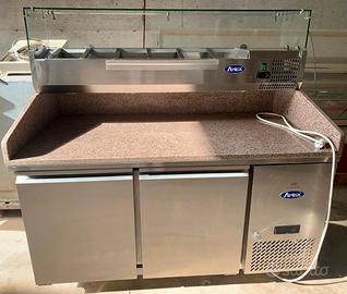 Banco pizza con 2 sportelli 1510x800 mm, completo di vetrina porta bacinelle refrigerata