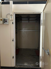 Si vendono diverse attrezzature funzionanti da macelleria. Causa fine attività Cella frigo grande Cella frigo armadio Banco espositivo Asta acciaio con ganci inox Lavandino inox Piccolo banco alluminio Ceppo legno