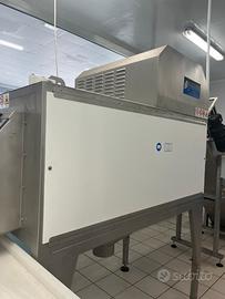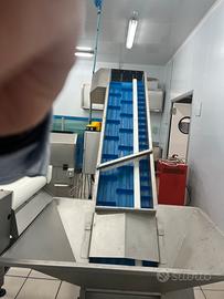 Macchinari in linea per la pulizia ed il confezionamento semi-automatico di cozze e molluschi vari in sacchetti retinati da 3 a 15 kg. circa. La linea è composta dai seguenti macchinari: - NASTRO DI CARICO mod. 2500x500 con tela in rete inox; - SPAZZOLATRICE mod. SP18; - NASTRO DI ISPEZIONE mod. 2000x600 con tela pvc; - NASTRO DI PESATURA ELETTRONICO mod. 2C; - CHIUDISACCO AD ARIA COMPRESSA CON STAMPANTE TERMICA; I macchinari completano una line per la lavorazione ed il confezionamento, fino all'etichettatura per i molluschi in genere (cozze, vongole etc). I macchinari risultano essere pari al nuovo, mai usati.