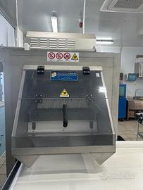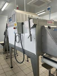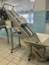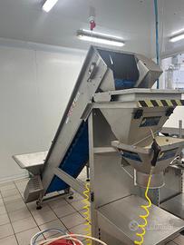 Macchinari in linea per la pulizia ed il confezionamento semi-automatico di cozze e molluschi vari in sacchetti retinati da 3 a 15 kg. circa. La linea è composta dai seguenti macchinari: - NASTRO DI CARICO mod. 2500x500 con tela in rete inox; - SPAZZOLATRICE mod. SP18; - NASTRO DI ISPEZIONE mod. 2000x600 con tela pvc; - NASTRO DI PESATURA ELETTRONICO mod. 2C; - CHIUDISACCO AD ARIA COMPRESSA CON STAMPANTE TERMICA; I macchinari completano una line per la lavorazione ed il confezionamento, fino all'etichettatura per i molluschi in genere (cozze, vongole etc). I macchinari risultano essere pari al nuovo, mai usati.