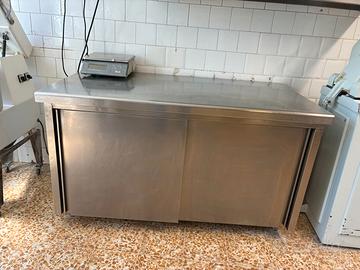 3) 1 banco da lavoro in acciaio inox con scompartimenti sottostanti, prezzo 300 euro