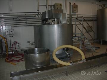 Causa cessata attività vendo attrezzature per caseificio per produzione caciotte, pecorini, formaggi freschi , ricotte. Varie pompe inox di diverse dimensioni e potenza, scrematrice Marca Seital , automatica 50 q.li /h, polivalente 30 q.li marca Magnabosco, doppiofordi per produzione ricotta da 10 e 5 q,li, cella di stagionatura caciotte, vasche in vetroresina per salamoie, cisterne refrigeranti da 20 e 70 q.li, termosigillatrice per chiusura fuscelle ricotta, carrelli vari , cip di lavaggio e molto altro.