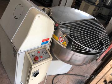 Per necessità di liberare un magazzino vendo in blocco le seguenti attrezzature per panificazione, alcune come pezzi di ricambio. Impastatrice a spirale esmach da 350 kg con ribaltatore idraulico perfettamente funzionante, solo da riprendere la verniciatura Impastatrice a forcella sottoriva da 150 kg perfettamente funzionante Arrotondatrice a campana, da rivedere i rivestimenti in teflon Gruppo esmach spezzatrice arrotondatrice e filonatrice a nastro, da riprendere, parte ma i tappeti e le lame vanno revisionati. 2 spezzatrici volumetriche solo per ricambi o per ferro vecchio in quanto pesano una tonnellata. Vendo in unico blocco a 10.000 euro, cortesemente astenersi indecisi, gente senza soldi e gente che non ha idea di come trasportare tutto. Do e pretendo la massima serietà