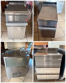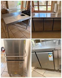 Attrezzature di cucina usate in ottimo stato fra cui tavoli refrigerati, lavastoviglie a capote, macchina sottovuoto, cuocipasta, abbattitore, produttore di ghiaccio, etc. Prezzo trattabile
