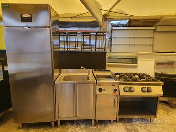 Cappa inox 150x60 senza motore usata ?. 400,00 Cappa inox 220x110 con motore usata ?. 1.800,00 Cucina 4 fuochi giorik usata ?. 1.000,00 Tavolo acciaio 160x70 con alzatina e ripiano NUOVO ?. 450,00 Tavolo acciaio 140x70 NUOVO ?. 385,00 Tavolo acciaio 200x70 NUOVO ?. 570,00 Lavabo da 150 2 vasche + sgocciolatoio NUOVO ?. 595,00 Pensile 160x40 h.100 con 2 mensole e scorrevoli NUOVO ?. 550,00 Lavabo 1 vasca 70x70 armadiato usato ?. 430,00 Forno elettrico 1 camera FIMAR usato ?. 600,00 Forno elettrico 2 camere su cavalletto usato ?. 1.200,00 Forno smeg usato ?. 350,00 Tutto pronta consegna disponiamo di molte altre attrezzature usate in magazzino " CONTATTATECI "
