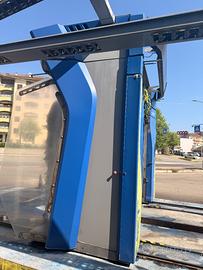 Portale autolavaggio self service con display led, spazzole antigraffio, alta pressione, trattamento Polish e rainx, antigelo automatico per bassa e alta pressione. Compresa cassa self service Mark (programmabile per 8 lavaggi e rendi resto) e pulsantiera manuale XBT. Anno 2014 Attualmente funzionante Prezzo trattabile, no perditempo