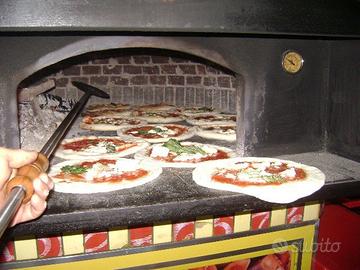 Pizzeria: Forno a legna cupola in mattoni capienza 8 pizze), banco stesura in granito/inox 200x80 cm
