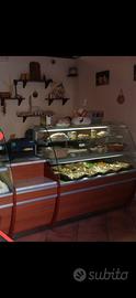 Banchi espositivi, 1 refrigerato e 1 a secco, e banco cassa adatti ad attività di pasticceria, pasta fresca ecc