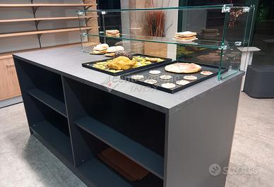 BANCO PANETTERIA - PIZZERIA - PASTICCERIA SECCA - NEUTRO DA 200 Bistrot-Easy" ROVERE CON TECA DA 150 N.1 Banco Neutro da 200 x 82 x 95/135 H con castello vetri da 150 x 31,5 x 40 H linea Easy, composto da struttura in legno nobilitato colore Grafite, con piano interno regolabile in altezza zoccolo posteriore ispezionabile in legno e zoccolo anteriore in ferro verniciato Micaceo. Montato su piedini metallici regolabili in altezza dall'interno mediante chiave a brugola, Top di Serie in laminato colore Ardesia Frontale in legno di colore Rovere, castello in vetro alto 40 cm con piano intermedio. Dimensioni: 200 x 82 x 95/135 H VENDITA ANCHE DEI SEGUENTI PRODOTTI: BANCHI SELF-SERVICE, BANCHI VENTILATI O BANCHI STATICI, BANCO PER PASTA FRESCA, BANCO SALUMI E FORMAGGI, BANCHI CARNE, BANCHI POKE', BANCHI YOGURTERIA, BANCHI PER COKTAIL, BANCHI CALDI SECCO, BANCHI CALDO BAGNO MARIA, BANCHI ROSTICCERIA, BANCHI CASSA, BANCHI SI SERVIZIO, BANCHI DROP-IN, RETROBANCHI ALIMENTARI, RETROBANCHI BAR, RETROBANCHI PANETTERIA, RETROBANCHI REFRIGERATI, PERNSILI REFRIGERATI, PENSILI, MURALE REFRIGERATO,ALZATE, SCAFFALI IN LEGNO, VETRINE REFRIGERATE STATICHE, VETRINA REFRIGERATA VENTILATA, BANCHI PANETTERERIA.