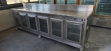 BANCO/BANCONE BAR professionale/RETROBANCO/retro banco inox REFRIGERATO/FRIGORIFERO marca FRIGOMECCANICA dotato delle seguenti caratteristiche: