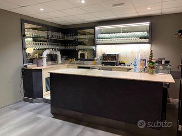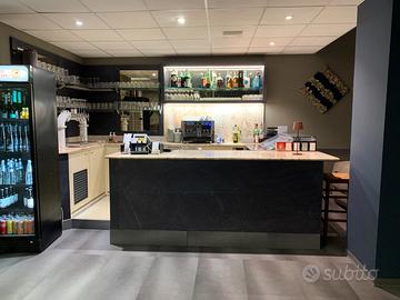 Bancone bar completo misure, 383x232xh246, completo di: impianto spine a 5 vie, macchina del ghiaccio, lavabicchieri, macchina del caffè a cialde, vetrina frigo, frigo da banco, solo se interessati.