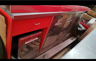con frigorifero incorporato misura 193×66×95 e una mensola con ripiani sovrastante 170×26×6 con colonna e porta con oblò.