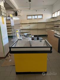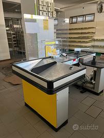 Vendo n. 2 banco cassa professionale completo, ideale per supermercati, minimarket e attività commerciali. ? Nastro trasportatore ? Piano cassa in acciaio inox ? Scanner barcode integrato ? Postazione operatore completa ? Paratia in plexiglass inclusa ? Struttura robusta per uso intensivo Il banco è usato ma in buone condizioni generali. Presenta normali segni di utilizzo. Perfetto per: apertura nuova attività sostituzione banco esistente allestimento negozio Prezzo: 450€ cad ? Ritiro a mano