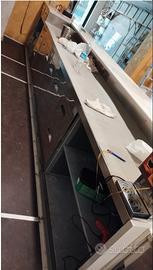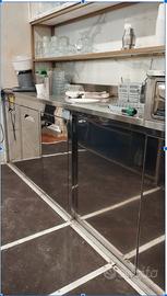 BANCO BAR COMPLETO CON UNA CELLA REFRIGERATA SOTTOBANCO COMPOSTA DI 2 CASSETTIERE E 4 ANTE , PIU' UNA SECONDA CELLA A TRE ANTE , VANO LAVASTOVIGLIE , VANO FABBRICATORE DEL GHIACCIO , 2 VANI PER IMMONDIZIA , 2 LAVELLI PIU' BASI .