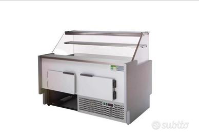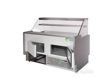 Banco espositore refrigerato ventilato 152x78x126h Con vano di riserva come in foto. Apertura e chiusura posteriore con pannelli in plexiglas scorrevoli. Nuovo, ancora nell'imballo originale e sulla pedana. Solo ritiro a Roma, via Tripoli