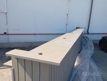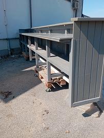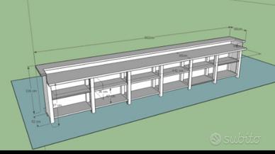 Fantastico Banco da lavoro, adatto a desk accoglienza, piano bar o somministrazione cibi e bevande per eventi fieristici o stagionali. Dim 662 x83 h 120. Completamente in legno listellare, già verniciato con smalto, adatto come fondo per altri colori. Essendo in legno si può tagliare e riadattare. Fori per cavi e prese per 6 postazioni, possibilità di trasporto e fatturazione. Max serietà.