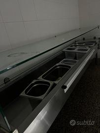 Vendo banco pizza professionale refrigerato marca Forcar, completo di piano in granito, vetrina refrigerata porta ingredienti e frigorifero inferiore con porte e cassetti.