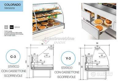 BANCHI SELF-SERVICE, BANCHI VENTILATI O BANCHI STATICI, BANCO PER PASTA FRESCA, BANCHI POKE', BANCHI YOGURTERIA, BANCHI PER SALUMI E FORMAGGI, BANCHI CALDI SECCO, BANCHI CALDO BAGNO MARIA, BANCHI ROSTICCERIA, BANCHI CASSA, BANCHI SI SERVIZIO, BANCHI DROP-IN, RETROBANCHI ALIMENTARI, RETROBANCHI BAR, RETROBANCHI PANETTERIA, PERNSILI REFRIGERATI, ALZATE, SCAFFALI IN LEGNO, VETRINE REFRIGERATE STATICHE, VETRINA REFRIGERATA VENTILATA, BANCHI PANETTERERIA, BANCHI ROSTICCERIA, BANCHI TAVOLA CALDA, SCANSIE PER SALUMERIA.
