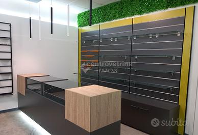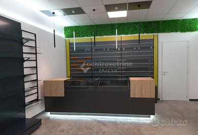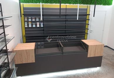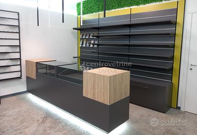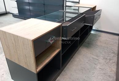 BANCO HD KIT 77 DA 300 composto da: N° 2 Banco modulare in legno, serie HD, con struttura in nobilitato, Top e Frontale in Vetro temperato sp.8 mm; altezza teca di vetro 25 cm; cassetto teca estraibile. Disponibile bianco o grigio pietra. Banco fornito smontato. DIMENSIONI: L90 X 60 X 90 H N° 2 Banco modulare in legno serie HD, con struttura in nobilitato, composto da N.2 banchi Cubolotto da L.60 x 60 x 45 H sovrapposti. Finitura colori di serie. Predisposto per cassetti. Banco fornito smontato. DIMENSIONI: L.60 X 60 X 90H. N° 1 CASSETTO PER CUBOLOTTO 60 completo di guide in metallo e maniglia. Disponibile bianco o grigio pietra. Cassetto fornito smontato. DIMENSIONI: L60 X 20 H N° 2 PEDANA DA 140 PER BANCO "HD" Pedana da 140 cm per banco "HD", struttura in nobilitato. Disponibile bianca o grigio pietra. Pedana fornita smontata. DIMENSIONI: L140 X 50 X 10 H BANCO FORNITO ESCLUSO DI ILLUMINAZIONE DIMENSIONI TOTALI: L. 300 X 60 X 100 H PESO KG.276 vendita anche dei seguenti prodotti: - scaffali in ferro - scaffalature in legno - scaffale con pannelli forati - piani in ferro - scansia e scansie - piani in legno - mensole - ganci - gondole in ferro - gondola in legno - testate gondola- scaffalature per frutta e verdura - retrobanchi in ferro - retrobanchi in legno - mobili base - cesti pane - cesti in vimini - barre appendi salumi - espositori cartolibreria - espositore cancelleria- portariviste - piani top in laminato - lavelli inox - banco cassa - bancone vendita - banchi in legno - banchi ad angolo - banchi tabaccheria - vetrine- vetrinette - banchi in vetro banchi reception - banco cassa reception - vetrina illuminata - pannello dogato - accessori per pannelli dogati - tavoli espositivi - banchi panetteria - vetrine pasticceria - banco pizzeria - banchi bar e caffetteria - banchi caldi per gastronomia - banco caldo in vetro ceramica per tavola calda - vetrine refrigerate pasta all'uovo - vetrina refrigerata ventilata - vetrina Drop-In - banchi neutri - murali frigo