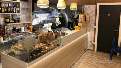 Retrobancone: struttura e piano in acciaio inox con lavandino rotondo elettrosaldato,parte inferiore chiusa con ante a battente e postazione caffè con battifondi. Cella B.T. a due sportelli e motore laterale. Misure 4mt x60x103cm