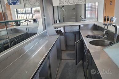 Vendo bancone bar completo professionale, ideale per bar, bistrot o attività di ristorazione. Lunghezza 3,5 metri, completo di: -Banco frontale effetto legno -Retrobanco in acciaio inox -Vetrina tavola calda (riscaldante) funzionante -Lavello doppio con rubinetteria -Depuratore acqua naturale e gassata con erogatore -Frigo banco integrato con 2 sportelli + 2 cassetti refrigerati -Ripiani in vetro e struttura professionale Attrezzatura completa e pronta all'uso, ideale per chi vuole lavorare subito senza ulteriori spese. ? Prezzo: 3000€ NON TRATTABILI ? Visionabile solo su appuntamento ? Smontaggio e trasporto a carico dell'acquirente ? Non rispondo a offerte al ribasso ? Contattare solo se realmente interessati